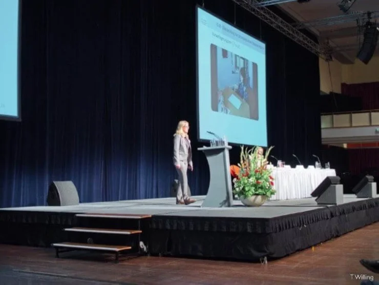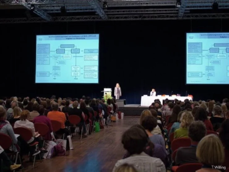 Danach gab die Referentin einen Überblick über aktuelle Diagnostikverfahren und erörterte deren Vor- und Nachteile. Mit ESGRAF-R entwickelte Motsch ein innovatives und handbares Diagnoseverfahren zur Datenerhebung und Auswertung für den Praktiker. An einem Videobeispiel demonstrierte die Referentin beispielhaft die Datenerhebung und Auswertung mittels ESGRAF-R in einen grammatikalischen Bereich.