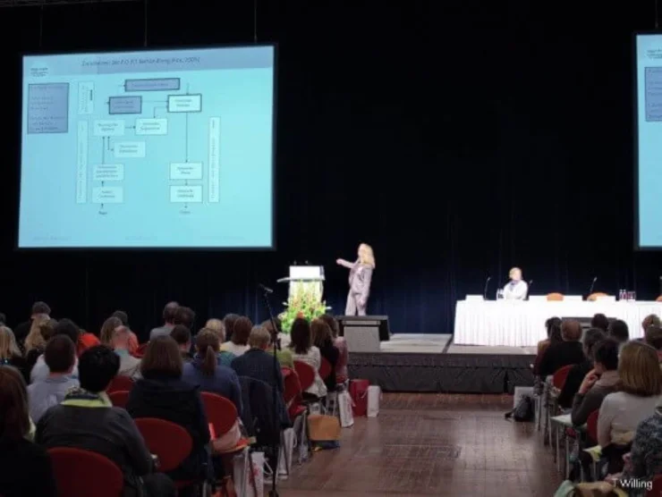 Schließlich erläutert die Dozentin anhand praktischer Beispiele aktuelle Behandlungsmethoden (den patholinguistischen AnsatzPLAN nach Kauschke & Siegmüller (2012), den entwicklungsproximalen Behandlungsansatz nach Dannenbauer, den Ansatz der Kontextoptimierung nach Motsch, den Triggeransatz nach Dohrs, den Ansatz der grammatischen Minimalpaare nach Schlag, sowie den Prosodieansatz nach Penner.